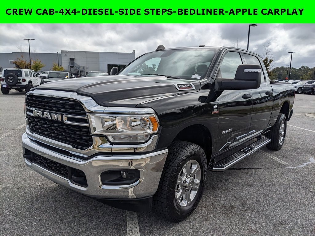 One Owner, Clean Autocheck / No Accidents, Factory Certified Preowned, Extended Warranty Available, Bluetooth / Hands-free, Apple Car Play / Android Auto Compatible, Back-Up Camera w/ Guidelines, Cruise Control, Portable Audio Connection, Premium Wheels, Multi-function Steering Wheel, Trailer Hitch, 4x4/4WD, Level I Equipment Group, Apple Carplay, Android Auto, *Premium Delivery Service Available*, iphone / Droid Navigation Compatible, DROP IN BEDLINER, 2500 Big Horn, 4D Crew Cab, 4WD, Diamond Black Crystal Pearlcoat, Diesel Gray/Black w/Cloth 40/20/40 Bench Seat or Premium Cloth 40/20/40 Bench Seat or Heavy Duty Vinyl 40/20/40 Split Bench Seat or Premium Cloth Bucket Seats, 2 Way Rear Headrest Seat, 2nd Row In Floor Storage Bins, 3.73 Axle Ratio, 40/20/40 Split Bench Seat, 4G LTE Wi-Fi Hot Spot, 8.4 Touchscreen Display, Apple CarPlay, Auto Power-Folding Mirrors, Big Horn IP Badge, Black Exterior Mirrors, Bluetooth Handsfree Phone & Audio, Cloth 40/20/40 Bench Seat, Connectivity - US/Canada, Diesel Exhaust Brake, Dual Glove Boxes, Emergency communication system: SiriusXM Guardian, Exterior Mirrors Courtesy Lamps, Exterior Mirrors w/Heating Element, Exterior Mirrors w/Supplemental Signals, Foam Bottle Insert (Door Trim Panel), Footwell Courtesy Lamp, For Details, Visit DriveUconnect.com, For More Info, Call 800-643-2112, Forward & Reverse Utility Lights, Front Armrest w/Cupholders, Front Fog Lamps, Global Telematics Box Module (TBM), Glove Box Lamp, Google Android Auto, GPS Antenna Input, Integrated Center Stack Radio, Integrated Voice Command w/Bluetooth, Leather Wrapped Steering Wheel, Level 1 Equipment Group, Locking Lower Glove Box, Low tire pressure warning, Mirror Running Lights, ParkView Rear Back-Up Camera, Power Adjust Mirrors, Power Adjustable Convex Aux Mirrors, Power Heated Fold Telescope Mirrors, Power Telescoping Mirrors, Premium Cloth 40/20/40 Bench Seat, Quick Order Package 2HZ Big Horn, Radio: Uconnect 5 W w/8.4 Display, Rear anti-roll bar, Rear Dome w/On/Off Switch Lamp, Rear Folding Seat, Remote keyless entry, Remote USB Port - Charge Only, Selectable Tire Fill Alert, SiriusXM Radio Service, SiriusXM Satellite Radio, Steering Wheel Mounted Audio Controls, Storage Tray, Wheels: 18 x 8.0 Polished Aluminum.