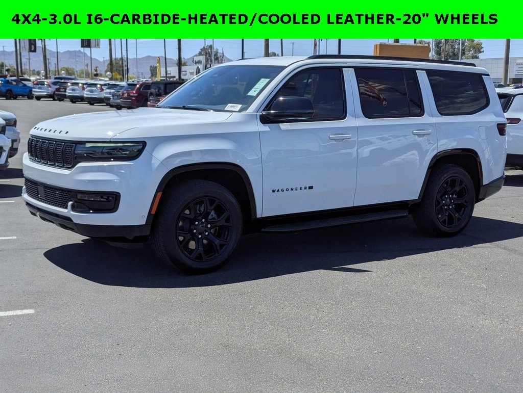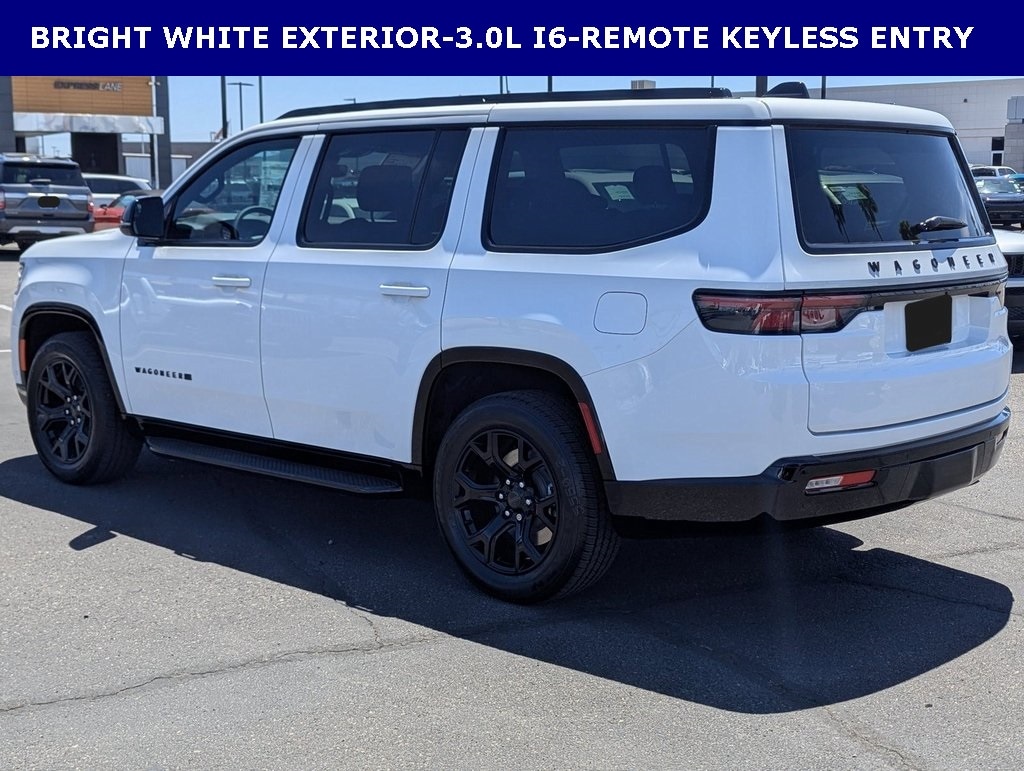 Savings applied to everyone. Includes $1000 finance assistance. Not available with special financing, lease and select other offers. Must take new retail delivery by 10/31/2025. Savings applied to everyone. $1000.00 Retail Trade Incentive for current owners trading in 2011 or newer motor vehicle with less than 150,000 miles. Trade must run and drive with valid registration. Not available with special financing, lease and some other offers. Must take new retail delivery by 10/31/2025. Ask Dealer representative for details on qualification. *The Jimmy Britt Premium Delivery Program lets you buy this vehicle right from the comfort of your couch. We frequently deliver vehicles nationwide, and even arrange test drives at home, if you are nearby. We will send you a personal video on any vehicle you are interested in. Call, email, or text us for details.* (Plus, you get our low-price guarantee and two free oil changes!) Factory MSRP: $71,735 Priced below KBB Fair Purchase Price! Bluetooth / Hands-free, Apple Car Play / Android Auto Compatible, 3rd Row Seats, Back-Up Camera w/ Guidelines, Cruise Control, Heated Seats, Leather Seats, Multi-Zone Climate Control, Navigation, Portable Audio Connection, Power Locks, Power Windows, Premium Wheels, Security System, Multi-function Steering Wheel, 4x4/4WD, Apple Carplay, Android Auto, Cooled Seats, *Premium Delivery Service Available*, iphone / Droid Navigation Compatible, Wagoneer Series II, 4D Sport Utility, 4WD, Bright White Clearcoat, Global Black w/Leather Trimmed Bucket Seats, 3.55 Rear Axle Ratio, AM/FM radio: SiriusXM with 360L, Apple CarPlay/Android Auto, Automatic temperature control, Black Exterior Accents, Carbide Appearance Package, Emergency communication system: Jeep Connect, Front dual zone A/C, Heated front seats, Heated steering wheel, Leather Trimmed Bucket Seats, Low tire pressure warning, Navigation System, Overhead console, ParkView Rear Back-Up Camera, Power driver seat, Power Liftgate, Power passenger seat, Quick Order Package 25F Carbide, Radio: Uconnect 5 Nav w/10.1" Display, Rain sensing wipers, Rear air conditioning, Rear anti-roll bar, Rear dual zone A/C, Rear window wiper, Remote keyless entry, Ventilated front seats, Wheels: 20" x 9" Gloss Black Painted Aluminum. Bright White Clearcoat 2025 Jeep Wagoneer Series II 3.0L I6 4WD