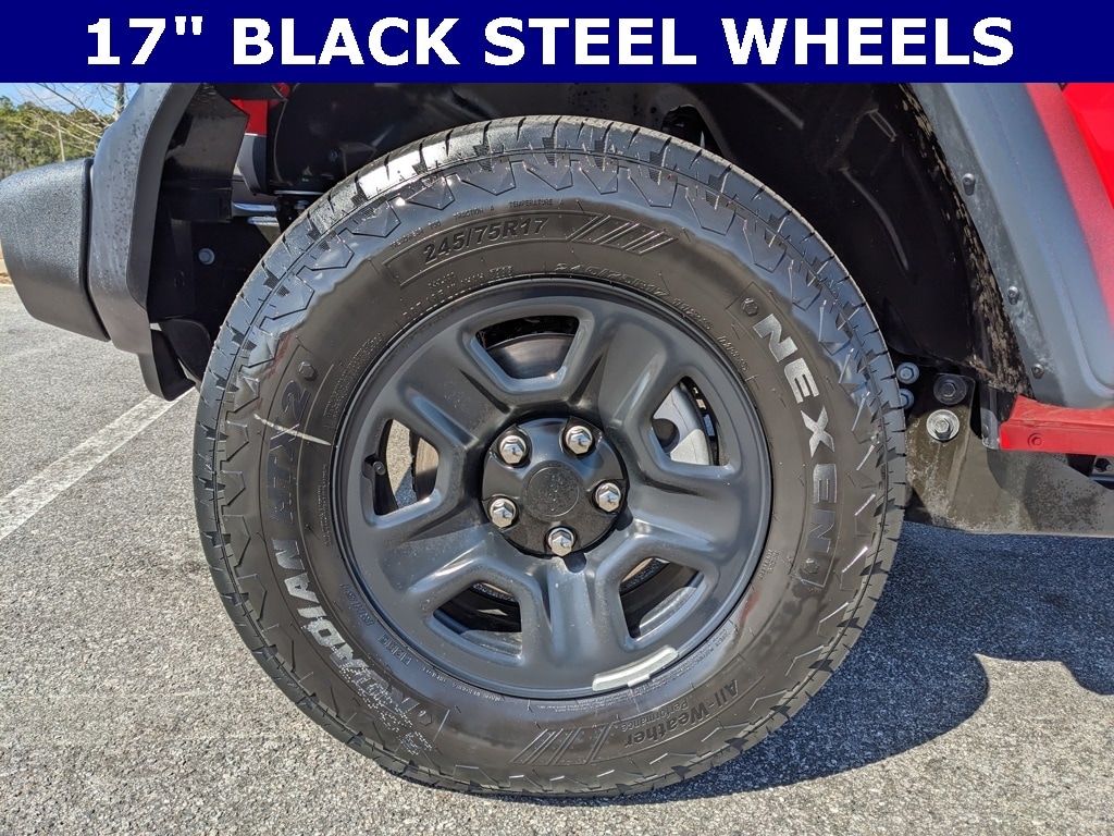 Price includes rebates. Not all customers may qualify for all rebates. $1000 - 2026 National Stellantis Loyalty Bonus Cash . Exp. 03/02/2026 Savings applied to everyone. Includes $1000 finance assistance. Not available with special financing, lease and select other offers. Must take new retail delivery by 02/04/2026. Savings applied to everyone. $1000.00 Retail Trade Incentive for current owners trading in 2011 or newer motor vehicle with less than 150,000 miles. Trade must run and drive with valid registration. Not available with special financing, lease and some other offers. Must take new retail delivery by 02/04/2026. Ask Dealer representative for details on qualification. *The Jimmy Britt Premium Delivery Program lets you buy this vehicle right from the comfort of your couch. We frequently deliver vehicles nationwide, and even arrange test drives at home, if you are nearby. We will send you a personal video on any vehicle you are interested in. Call, email, or text us for details.* (Plus, you get our low-price guarantee and two free oil changes!) Factory MSRP: $43,190 Bluetooth / Hands-free, Apple Car Play / Android Auto Compatible, Back-Up Camera w/ Guidelines, Cruise Control, Portable Audio Connection, Power Locks, Power Windows, Premium Wheels, Security System, Multi-function Steering Wheel, 4x4/4WD, Apple Carplay, Android Auto, *Premium Delivery Service Available*, iphone / Droid Navigation Compatible, Wrangler Sport, 4D Sport Utility, 4WD, Firecracker Red Clearcoat, Black Cloth Seats, 3.45 Overall Top Gear Ratio, ABS brakes, AM/FM radio: SiriusXM with 360L, Apple CarPlay, Apple CarPlay/Android Auto, Cloth Low-Back Bucket Seats, Compass, Electronic Stability Control, Front Bucket Seats, Google Android Auto, Illuminated entry, Integrated roll-over protection, Low tire pressure warning, ParkView Rear Back-Up Camera, Quick Order Package 22B Sport, Radio: Uconnect 5 with 12.3" Display, Rear anti-roll bar, Remote keyless entry, Traction control, Wheels: 17" x 7.5" Black Steel Styled. Firecracker Red Clearcoat 2026 Jeep Wrangler Sport 2.0L I4 DOHC 4WD
