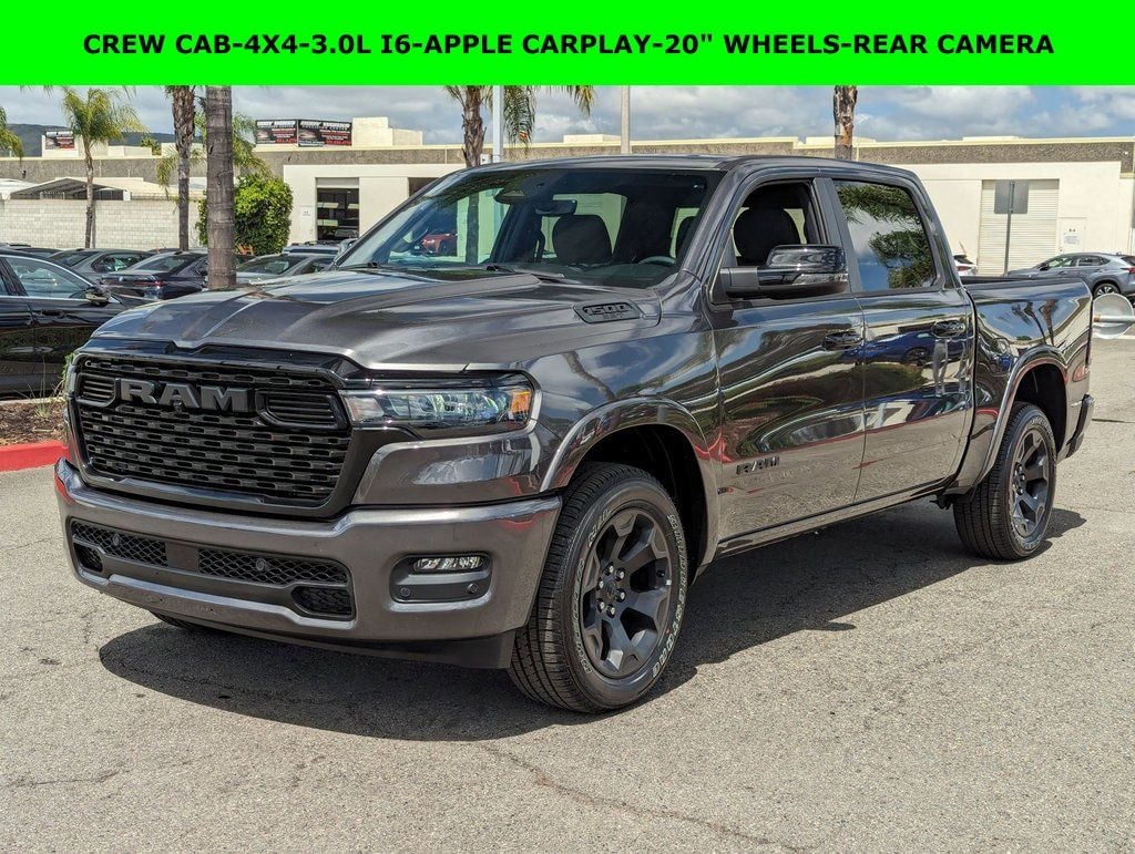 Price includes rebates. Not all customers may qualify for all rebates. $1000 - 2026 Southeast BC Retail Bonus Cash. Exp. 03/31/2026 $3500 - 2026 National Retail Bonus Cash . Exp. 03/31/2026 Savings applied to everyone. Includes $1000 finance assistance. Not available with special financing, lease and select other offers. Must take new retail delivery by 04/30/2026. Savings applied to everyone. $1000.00 Retail Trade Incentive for current owners trading in 2011 or newer motor vehicle with less than 150,000 miles. Trade must run and drive with valid registration. Not available with special financing, lease and some other offers. Must take new retail delivery by 04/30/2026. Ask Dealer representative for details on qualification. *The Jimmy Britt Premium Delivery Program lets you buy this vehicle right from the comfort of your couch. We frequently deliver vehicles nationwide, and even arrange test drives at home, if you are nearby. We will send you a personal video on any vehicle you are interested in. Call, email, or text us for details.* (Plus, you get our low-price guarantee and two free oil changes!) Factory MSRP: $60,815 Priced below KBB Fair Purchase Price! Bluetooth / Hands-free, Apple Car Play / Android Auto Compatible, Back-Up Camera w/ Guidelines, Cruise Control, Portable Audio Connection, Power Locks, Power Windows, Premium Wheels, Multi-function Steering Wheel, 4x4/4WD, Apple Carplay, Android Auto, *Premium Delivery Service Available*, iphone / Droid Navigation Compatible, 1500 Big Horn/Lone Star, 4D Crew Cab, 3.0L I6, 4WD, Granite Crystal Metallic Clearcoat, Black w/Cloth Bench Seat or Cloth Bucket Seats, 3.92 Rear Axle Ratio, 4G LTE Wi-Fi Hot Spot, Accent Color Door Handles, Accent Color Premium Power Mirrors, Accent Color Tailgate Handle, Anti-Spin Differential Rear Axle, Apple CarPlay, Apple CarPlay/Android Auto, Auto Power-Folding Mirrors, Auto-Dimming Exterior Driver Mirror, Black Exterior Truck Badging, Black Headlamp Bezels, Black Interior Accents, Black Painted Exterior Mirrors Caps, Black Tail Lamp Bezels, Body Color Front Bumper, Bucket Seats, Cloth Bucket Seats, Connectivity - US/Canada, Convex Wide-Angle Exterior Mirror Insert, Exterior Mirrors Courtesy Lamps, Front Bucket Seats, Google Android Auto, GPS Antenna Input, Grille Black Surround Black Mesh, Integrated Center Stack Radio, Low tire pressure warning, Night Edition, ParkView Rear Back-Up Camera, Quick Order Package 21Z Big Horn, Radio data system, RAM Grille Badge - Black, Rear anti-roll bar, Remote keyless entry, Trailer Brake Control, Wheels: 20" x 9.0" Aluminum Painted Clad. Granite Crystal Metallic Clearcoat 2026 Ram 1500 Big Horn/Lone Star 3.0L I6 4WD