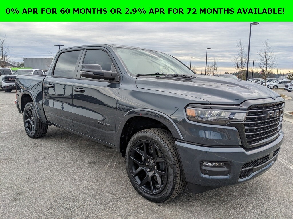 Price includes rebates. Not all customers may qualify for all rebates. $1000 - 2026 National Bonus Cash . Exp. 03/02/2026 $3500 - 2026 National Retail Consumer Cash . Exp. 03/02/2026 Savings applied to everyone. Includes $1000 finance assistance. Not available with special financing, lease and select other offers. Must take new retail delivery by 02/04/2026. Savings applied to everyone. $1000.00 Retail Trade Incentive for current owners trading in 2011 or newer motor vehicle with less than 150,000 miles. Trade must run and drive with valid registration. Not available with special financing, lease and some other offers. Must take new retail delivery by 02/04/2026. Ask Dealer representative for details on qualification. *The Jimmy Britt Premium Delivery Program lets you buy this vehicle right from the comfort of your couch. We frequently deliver vehicles nationwide, and even arrange test drives at home, if you are nearby. We will send you a personal video on any vehicle you are interested in. Call, email, or text us for details.* (Plus, you get our low-price guarantee and two free oil changes!) Factory MSRP: $75,400 Priced below KBB Fair Purchase Price! Bluetooth / Hands-free, Apple Car Play / Android Auto Compatible, Back-Up Camera w/ Guidelines, Cruise Control, Heated Seats, Leather Seats, Multi-Zone Climate Control, Navigation, Portable Audio Connection, Power Locks, Power Windows, Premium Audio, Premium Wheels, Security System, Multi-function Steering Wheel, Sunroof / Moonroof, 4x4/4WD, Remote Start, Level 2 Equipment Group, Apple Carplay, Android Auto, Cooled Seats, *Premium Delivery Service Available*, iphone / Droid Navigation Compatible, 1500 Laramie, 4D Crew Cab, 3.0L I6, 4WD, Forged Blue Metallic, Black w/Leather Trimmed Bucket Seats, 14.4" Touchscreen Display, 3.55 Rear Axle Ratio, 4G LTE Wi-Fi Hot Spot, Accent Color Door Handles, Accent Color Premium Power Mirrors, Accent Color Tailgate Handle, Anti-Spin Differential Rear Axle, Apple CarPlay/Android Auto, Auto Power-Folding Mirrors, Auto-Dimming Exterior Driver Mirror, Automatic temperature control, Black Exterior Truck Badging, Black Headlamp Bezels, Black Interior Accents, Black Painted Exterior Mirrors Caps, Black Tail Lamp Bezels, Body Color Front Bumper, Cluster 12" TFT Color Display, Connected Travel and Traffic Services, Connectivity - US/Canada, Convex Wide-Angle Exterior Mirror Insert, Dome Dual LED Reading Lamp, Dual-Pane Panoramic Sunroof, Exterior Mirrors Approach Lamps, Exterior Mirrors Courtesy Lamps, Front dual zone A/C, Front Passenger Interactive Display, Front wheel independent suspension, GPS Navigation, Grille Surround 3 Black Texture 2 Black, Harman/Kardon 19 Speaker Premium Sound, Heated front seats, Heated rear seats, Heated steering wheel, Integrated Center Stack Radio, Integrated Voice Command with Bluetooth, Laramie Level 2 Equipment Group, Leather Trimmed Bucket Seats, LED Dome/Reading Lamp, Low tire pressure warning, Navigation System, Night Edition, ParkView Rear Back-Up Camera, Pirelli Brand Tires, Power driver seat, Power passenger seat, Power Tailgate, Proximity Approach/Departure Lamps, Quick Order Package 21H Laramie, Radio: Uconnect 5 Nav with 14.4" Display, Rain Sensitive Windshield Wipers, RAM Grille Badge - Black, Rear anti-roll bar, Remote keyless entry, SiriusXM Radio Service, SiriusXM with 360L, Sport Performance Hood, Trailer Brake Control, USB Host Flip, Ventilated front seats, Wheels: 22" x 9" Forged Aluminum. Forged Blue Metallic 2026 Ram 1500 Laramie 3.0L I6 4WD