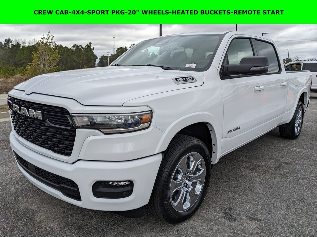 Price includes rebates. Not all customers may qualify for all rebates. $1000 - 2026 Southeast BC Retail Bonus Cash. Exp. 03/31/2026 $3500 - 2026 National Retail Consumer Cash . Exp. 03/31/2026 Savings applied to everyone. Includes $1000 finance assistance. Not available with special financing, lease and select other offers. Must take new retail delivery by 04/30/2026. Savings applied to everyone. $1000.00 Retail Trade Incentive for current owners trading in 2011 or newer motor vehicle with less than 150,000 miles. Trade must run and drive with valid registration. Not available with special financing, lease and some other offers. Must take new retail delivery by 04/30/2026. Ask Dealer representative for details on qualification. *The Jimmy Britt Premium Delivery Program lets you buy this vehicle right from the comfort of your couch. We frequently deliver vehicles nationwide, and even arrange test drives at home, if you are nearby. We will send you a personal video on any vehicle you are interested in. Call, email, or text us for details.* (Plus, you get our low-price guarantee and two free oil changes!) Factory MSRP: $65,285 Bluetooth / Hands-free, Apple Car Play / Android Auto Compatible, Back-Up Camera w/ Guidelines, Cruise Control, Heated Seats, Portable Audio Connection, Power Locks, Power Windows, Premium Wheels, Security System, Multi-function Steering Wheel, 4x4/4WD, Remote Start, Level I Equipment Group, Apple Carplay, Android Auto, *Premium Delivery Service Available*, iphone / Droid Navigation Compatible, 1500 Big Horn/Lone Star, 4D Crew Cab, 3.0L I6, 4WD, Bright White Clearcoat, Black w/Cloth Bucket Seats or Cloth Bench Seat or Deluxe Cloth Bucket Seats, 115V Auxiliary Power Outlet, 3 Rear Seat Head Restraints, 3.92 Rear Axle Ratio, 4 Way Front Headrests, 400W Inverter, 4G LTE Wi-Fi Hot Spot, Apple CarPlay, Apple CarPlay/Android Auto, Auto Power-Folding Mirrors, Auto-Dimming Exterior Driver Mirror, Auto-Dimming Rear-View Mirror, Big Horn Level 1 Equipment Group, Black Exterior Mirrors, Black Interior Accents, Black Premium Power Mirrors, Body Color Door Handles, Body Color Fender Flares, Body Color Front Bumper, Body Color Tailgate Handle, Bucket Seats, Center Console Parts Module, Cloth Bucket Seats, Convex Wide-Angle Exterior Mirror Insert, Deluxe Cloth Bucket Seats, Exterior Mirrors Courtesy Lamps, Front Seat Back Map Pockets, Full Length Floor Console, Glove Box Lamp, GPS Antenna Input, Grille Surround 1 Body Color Texture 1 Black, Heated Front Seats, Heated Steering Wheel, Leather Wrapped Steering Wheel, Low tire pressure warning, Occupant sensing airbag, ParkView Rear Back-Up Camera, Power 2-Way Driver Lumbar Adjust, Power Adjust 8-Way Driver Seat, Power Adjustable Pedals, Quick Order Package 21Z Big Horn, Radio: Uconnect 5 W with 8.4" Display, Rear 60/40 Folding Seat, Rear anti-roll bar, Rear Center Armrest, Rear Power Sliding Window, Rear Window Defroster, Remote keyless entry, SiriusXM Radio Service, SiriusXM Satellite Radio, Sport Appearance Package, Steering Wheel Mounted Audio Controls, Trailer Brake Control, Variably intermittent wipers, Wheels: 20" x 9" Aluminum Chrome Clad. Bright White Clearcoat 2026 Ram 1500 Big Horn/Lone Star 3.0L I6 4WD
