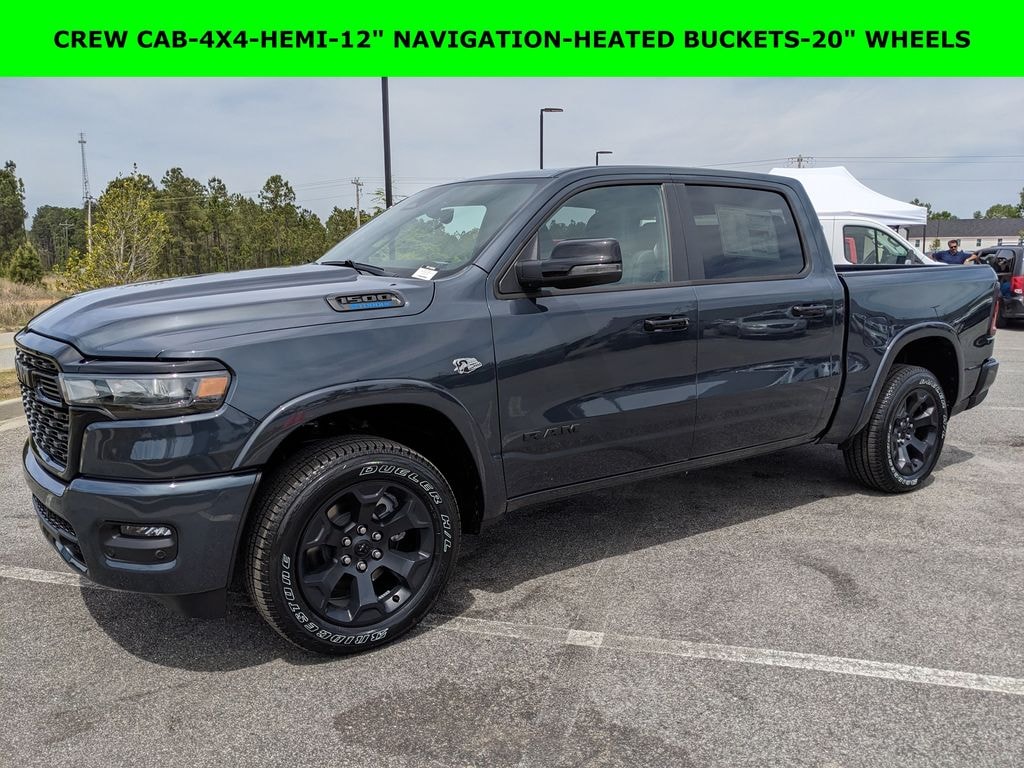 Price includes rebates. Not all customers may qualify for all rebates. $1000 - 2026 Southeast BC Retail Bonus Cash. Exp. 04/30/2026 $3500 - 2026 National Retail Bonus Cash . Exp. 04/30/2026 Savings applied to everyone. Includes $1000 finance assistance. Not available with special financing, lease and select other offers. Must take new retail delivery by 06/30/2026. Savings applied to everyone. $1000.00 Retail Trade Incentive for current owners trading in 2011 or newer motor vehicle with less than 150,000 miles. Trade must run and drive with valid registration. Not available with special financing, lease and some other offers. Must take new retail delivery by 06/30/2026. Ask Dealer representative for details on qualification. *The Jimmy Britt Premium Delivery Program lets you buy this vehicle right from the comfort of your couch. We frequently deliver vehicles nationwide, and even arrange test drives at home, if you are nearby. We will send you a personal video on any vehicle you are interested in. Call, email, or text us for details.* (Plus, you get our low-price guarantee and two free oil changes!) Factory MSRP: $64,095 Priced below KBB Fair Purchase Price! Bluetooth / Hands-free, Apple Car Play / Android Auto Compatible, Back-Up Camera w/ Guidelines, Cruise Control, Heated Seats, Multi-Zone Climate Control, Navigation, Portable Audio Connection, Power Locks, Power Windows, Premium Audio, Premium Wheels, Security System, Multi-function Steering Wheel, 4x4/4WD, Remote Start, Level 2 Equipment Group, Apple Carplay, Android Auto, *Premium Delivery Service Available*, iphone / Droid Navigation Compatible, 1500 Big Horn/Lone Star, 4D Crew Cab, HEMI 5.7L V8 Multi Displacement VVT eTorque, 4WD, Forged Blue Metallic, Black w/Cloth Bench Seat Or Cloth Bucket Seats, 115V Auxiliary Power Outlet, 115V Auxiliary Rear Power Outlet, 12" Touchscreen Display, 2nd Row in Floor Storage Bins, 3 Rear Seat Head Restraints, 3.92 Rear Axle Ratio, 4 Way Front Headrests, 400W Inverter, 4G LTE Wi-Fi Hot Spot, 9 Amplified Speakers with Subwoofer, Accent Color Door Handles, Accent Color Premium Power Mirrors, Accent Color Tailgate Handle, Air Conditioning ATC with Dual Zone Control, Anti-Spin Differential Rear Axle, Apple CarPlay, Apple CarPlay/Android Auto, Auto Power-Folding Mirrors, Auto-Dimming Exterior Driver Mirror, Auto-Dimming Rear-View Mirror, Big Horn Level 2 Equipment Group, Black Exterior Mirrors, Black Exterior Truck Badging, Black Headlamp Bezels, Black Interior Accents, Black Painted Exterior Mirrors Caps, Black Premium Power Mirrors, Black Tail Lamp Bezels, Body Color Fender Flares, Body Color Front Bumper, Body Color Rear Bumper with Step Pads, Bucket Seats, Center Console Parts Module, Cloth Bucket Seats, Cluster 7.0" TFT Color Display, Configurable Drive Mode, Connected Travel and Traffic Services, Connectivity - US/Canada, Convex Wide-Angle Exterior Mirror Insert, Deluxe Cloth Bucket Seats, Disassociated Touchscreen Display, Dual Exhaust with Black Tips, Exterior Mirrors Courtesy Lamps, Exterior Mirrors with Heating Element, Exterior Mirrors with Supplemental Signals, Front Seat Back Map Pockets, Full Length Floor Console, Global Telematics Box Module, Glove Box Lamp, Google Android Auto, GPS Antenna Input, GPS Navigation, Grille Black Surround Black Mesh, HD Radio, Heated Front Seats, Heated Steering Wheel, Integrated Center Stack Radio, Integrated Voice Command with Bluetooth, Leather Wrapped Steering Wheel, LED Dome Lamp with on/Off Switch, LED Footwell Lighting, Low tire pressure warning, Media Hub with 2 Charge Only USBs, Navigation System, Night Edition, Overhead LED Lamps, ParkView Rear Back-Up Camera, Power 2-Way Driver Lumbar Adjust, Power Adjust 8-Way Driver Seat, Power Adjustable Pedals, Premium Overhead Console, Quick Order Package 27Z Big Horn, Radio: Uconnect 5 Navigation with 12.0" Display, RAM Grille Badge - Black, Rear 60/40 Folding Seat, Rear anti-roll bar, Rear Center Armrest, Rear Power Sliding Window, Rear Windo