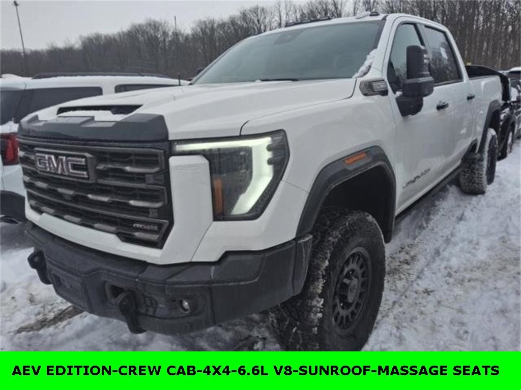 Remaining Factory Warranty, Extended Warranty Available, Bluetooth / Hands-free, Apple Car Play / Android Auto Compatible, Surround-View Camera w/ Guidelines, Heated Seats, Keyless Entry, Leather Seats, Multi-Zone Climate Control, Navigation, Portable Audio Connection, Premium Audio, Premium Wheels, Security System, Multi-function Steering Wheel, Sunroof / Moonroof, Trailer Hitch, 4x4/4WD, Remote Start, Spray-in Bedliner, Android Auto, Cooled Seats, *Premium Delivery Service Available*, iphone / Droid Navigation Compatible, Sierra 2500HD AT4X, 4D Crew Cab, 6.6L V8, 10-Speed Automatic, 4WD, Summit White, Obsidian Rush w/Full Grain Leather Seat Trim, 120-Volt Bed Mounted Power Outlet, 120-Volt Instrument Panel Power Outlet, 2 Charge-Only Rear USB Ports, 2 Charge/Data USB Ports Inside Center Console, 2 USB Ports, 2-Speed Active Transfer Case, AEV Brand Floor Liners (LPO), AT4X AEV Edition, Bed View Camera w/2 Trailer Camera Provisions, Bose Premium Series 12-Speaker System, Deep-Tinted Glass, Electric Rear-Window Defogger, Floor-Mounted Center Console, Front Prem Floor Liners w/Removable Carpet Insert, Front Rain-Sensing Wipers, Gloss Black Door Handles, Gloss Black Header Grille & Grille Insert Bars, GMC Connected Access Capable, Gooseneck/5th Wheel Prep Package, HD Surround Vision, Heated 2nd Row Outboard Seats, Heated Driver & Front Outboard Passenger Seats, High Approach Stamped Steel AEV Front Bumper, Hill Descent Control, Inside Rearview Auto-Dimming Rear Camera Mirror, Integrated Trailer Brake Controller, Keyless Open & Start, LED Cargo Area Lighting, LED Smoked Amber Roof Marker Lamps, Manual Tilt-Wheel/Telescoping Steering Column, Multicolor 15 Diagonal Head-Up Display, Navigation System, OnStar & GMC Connected Services Capable, Power Front Passenger Windows w/Express Up/Down, Power Sliding Rear Window w/Defogger, Power Sunroof, Preferred Equipment Group 4SG, Push Button Start, Rear Cross Traffic Alert, Rear Prem Floor Liners w/Removable Carpet Insert, Rear Wheelhouse Liners, Remote Vehicle Starter System, Safety Alert Seat, SiriusXM w/360L, Spray-On Bedliner w/AT4 Logo, Stamped Steel AEV Rear Bumper, Steering Wheel Audio Controls, Trailer Cam Provisions & Trailer Viewing Software, Trailer Side Blind Zone Alert, Trailer Tire Pressure Monitor Sensors, Ultrasonic Front & Rear Park Assist, Unauthorized Entry Theft-Deterrent System, Universal Home Remote, Ventilated Driver & Front Passenger Seats, Wheels: 18 AEV Salta Black Gloss Aluminum, Wireless Charging, Wireless Phone Projection.