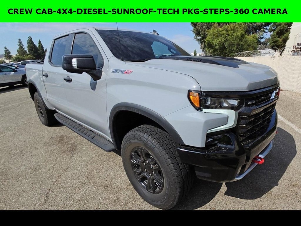 NEW ARRIVAL PHOTOS COMING SOON!, iPhone/ Android Navigation compatible, Automatic Headlights, Rearview Camera, Bluetooth, Leather, Sunroof / Moonroof, Towing Package / Hitch, Bedliner, Running Boards, Heated and Vented Front Seats, Heated 2nd Row, Heated Steering Wheel, Remote Starter System, EZ Lift and Lower Tailgate, LED Cargo Box Lighting, Bose Premium Speaker System, Mutli-function Steering Wheel, 4X4, Includes the Remainder of the Factory Warranty, Extended Warranty Available, Apple Carplay, ONSTAR, Push Button Start, Remote Keyless Entry, Andoid Auto, Premium Delivery Service Available, Silverado 1500 ZR2, 4D Crew Cab, 3.0L I6, 10-Speed Automatic, 4WD, Slate Gray Metallic, Jet Black/Graystone w/Perforated Leather Seat Trim, 10-Way Power Driver Seat w/Lumbar, 10-Way Power Passenger Seat Adjuster w/Lumbar, 12.3 Multicolor Reconfigurable Digital Display, 120-Volt Interior Power Outlet, 15 Diagonal Multicolor Head-Up Display, 2 USB Data Ports, 2nd Row Heated Outboard Seats, Adaptive Cruise Control, All-Weather Floor Liner (LPO), Auto-Dimming Inside Rear-View Mirror, Bed View Camera, Bluetooth® For Phone, Chevytec Spray-On Black Bedliner, Color-Keyed Carpeting Floor Covering, Deep-Tinted Glass, Driver Memory, Dual Rear USB Ports (Charge Only), Electrical Steering Column Lock, EZ Lift Power Lock & Release Tailgate, Floor Mounted Center Console, Front LED Fog Lamps, Front Rain-Sensing Wipers, HD Surround Vision, Heated Driver & Front Outboard Passenger Seats, Heated Steering Wheel, Heavy-Duty Air Filter, High Gloss Black Mirror Caps, Hill Descent Control, Hitch Guidance w/Hitch View, In-Vehicle Trailering System App, Integrated Trailer Brake Controller, Keyless Open & Start, LED Cargo Area Lighting, Manual Tilt/Telescoping Steering Column, Navigation System, OnStar & Chevrolet Connected Services Capable, Outside Heated Power-Adjustable Mirrors, Performance Red Recovery Hooks, Perimeter Lighting, Power Front Passenger Windows w/Express Up/Down, Power Front Windows w/Driver Express Up/Down, Power Rear Windows w/Express Down, Power Sliding Rear Window w/Rear Defogger, Power Sunroof, Power Tilt & Telescoping Steering Column, Preferred Equipment Group 3LT, Rear Camera Mirror, Rear Cross Traffic Braking, Rear Park Assist, Rear Pedestrian Alert, Rear Wheelhouse Liners, Remote Vehicle Starter System, Safety Alert Seat, SiriusXM w/360L, Standard Tailgate, Steering Wheel Audio Controls, Technology Package, Theft Deterrent System (Unauthorized Entry), Trailer Camera Provisions, Trailer Side Blind Zone Alert, Trailering Package, Universal Home Remote, Up-Level Rear Seat w/Storage Package, Ventilated Driver & Front Passenger Seats, Wheels: 18 x 8.5 Gloss Black, Wrapped Steering Wheel, ZR2 Suspension Package.