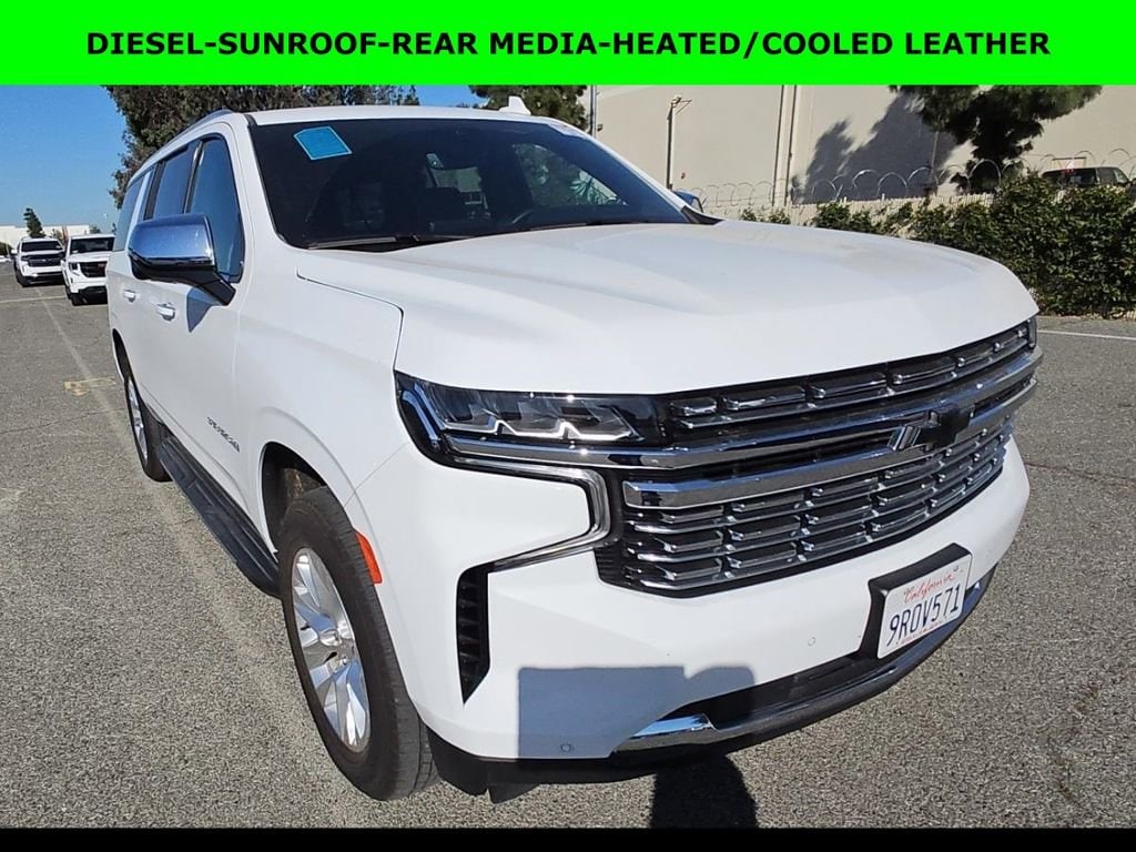 NEW ARRIVAL PHOTOS COMING SOON!, iPhone/ Android Navigation compatible, Leather, Sunroof / Moonroof, Rear DVD Entertainment System, Towing Package / Hitch, Running Boards, Heated and Vented Front Seats, Heated 2nd Row, Heated Steering Wheel, Remote Starter System, Mutli-function Steering Wheel, Includes the Remainder of the Factory Warranty, Extended Warranty Available, Apple Carplay, ONSTAR, 3rd Row Seats, Push Button Start, Remote Keyless Entry, Andoid Auto, Premium Delivery Service Available, Suburban Premier, 4D Sport Utility, 3.0L I6, 10-Speed Automatic, Summit White, Jet Black w/Perforated Leather Seating Surfaces, 12-Way Power Driver & Passenger Seat Adjusters, 15 Diagonal Multi-Color Head-Up Display, 1st & 2nd Row Color-Keyed Carpeted Floor Mats, 20 x 9 Polished Aluminum Wheels, 3rd Row 60/40 Power-Folding Split-Bench, Auto-Dimming Inside Rear-View Mirror, Bose 10-Speaker Surround w/CenterPoint, Bright Front & Rear Door Sill Plates, Chrome Door Handles w/Body-Color Strip, Chrome Mirror Caps, Color-Keyed Carpeting Floor Covering, Driver & Front Outboard Passenger Airbags, Dual Exhaust System, Dual-Pane Power Panoramic Sunroof, Enhanced Display & Alert Package, Enhanced Driver Information Center, Floor Console, Hands-Free Rear Power Programmable Liftgate, HD Surround Vision, Heated 2nd Row Outboard Seats, Heated Driver & Front Passenger Seats, Heated Steering Wheel, Infotainment Display, Inside Rearview Auto-Dimming Rear Camera Mirror, Lane Change Alert w/Side Blind Zone Alert, LED Daytime Running Lamps, License Plate Front Mounting Package, Memory Settings, Navigation System, Outside Heated Power-Adjustable Mirrors, Perforated Heated & Ventilated Seats, Power Release 2nd Row Bucket Seats, Power Tilt & Telescopic Steering Column, Preferred Equipment Group 1LZ, Rear Camera Mirror Washer, Rear Cross Traffic Alert, Rear Pedestrian Alert, Remote Start, Safety Alert Seat, SiriusXM w/360L, Universal Home Remote, Wireless Charging, Wrapped Steering Wheel.