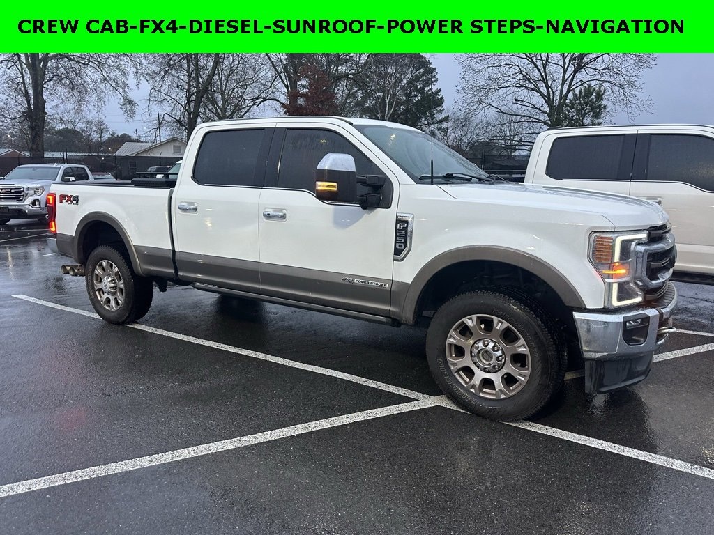 One Owner, Clean Autocheck / No Accidents, Remaining Factory Warranty, Extended Warranty Available, Bluetooth / Hands-free, Apple Car Play / Android Auto Compatible, Heated Seats, Keyless Entry, Leather Seats, Multi-Zone Climate Control, Navigation, Portable Audio Connection, Premium Audio, Premium Wheels, Security System, Multi-function Steering Wheel, Sunroof / Moonroof, Trailer Hitch, 4x4/4WD, Remote Start, Apple Carplay, Android Auto, Cooled Seats, *Premium Delivery Service Available*, iphone / Droid Navigation Compatible, F-250 SuperDuty King Ranch, 4D Crew Cab, Power Stroke 6.7L V8 DI 32V OHV Turbodiesel, 10-Speed Automatic, 4WD, Oxford White, Java w/Unique King Ranch Leather 40/Console/40 Front Seats, 6 Angular Bright Polished Step Bars, Body-Color Door Handles w/Chrome Insert, Chrome Exhaust Tip, Chrome Package, FX4 Off-Road Package, GVWR: 10,000 lb Payload Package, High Capacity Trailer Tow Package, Hill Descent Control, Lane Departure Warning System, Navigation System, Navigation system: Connected Navigation, Off-Road Specifically Tuned Shock Absorbers, PowerScope Trailer Tow Mirrors w/Heat, Pro Trailer Backup Assist - High Capacity, Twin Panel Power Moonroof, Ultimate Trailer Tow Camera System, Unique Chrome Mirror Caps, Unique FX4 Off-Road Box Decal, Wheels: 20 Chrome PVD Aluminum.