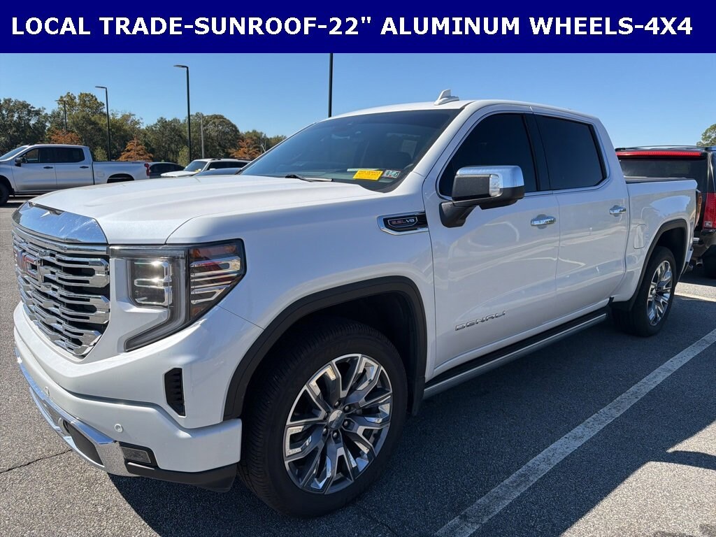Clean Autocheck / No Accidents, Remaining Factory Warranty, Extended Warranty Available, Bluetooth / Hands-free, Apple Car Play / Android Auto Compatible, Surround-View Camera w/ Guidelines, Local Trade-in, Cruise Control, Heated Seats, Keyless Entry, Leather Seats, Multi-Zone Climate Control, Navigation, Premium Audio, Premium Wheels, Security System, Multi-function Steering Wheel, Sunroof / Moonroof, Trailer Hitch, 4x4/4WD, Remote Start, Spray-in Bedliner, Cooled Seats, *Premium Delivery Service Available*, Sierra 1500 Denali, 4D Crew Cab, EcoTec3 6.2L V8, 10-Speed Automatic, 4WD, White Frost Tricoat, Atmosphere/Brownstone w/Forge Perforated Leather Seat Trim, 120-Volt Instrument Panel Power Outlet, 170 Amp Alternator, 2 Charge/Data USB Ports Inside Center Console, 2 Type-C Charge-Only Rear USB Ports, 2 USB Ports, Auto-Locking Rear Differential, Auxiliary External Transmission Oil Cooler, Bed View Camera, Cargo Convenience Package, Chrome Header w/Signature Denali Chrome Grille, Chrome Recovery Hooks, Chrome Wheel To Wheel Assist Steps, Color-Keyed Carpeting Floor Covering, Compass, Console-Mounted Safe (LPO), Deep-Tinted Glass, Denali Reserve Package, Electric Rear-Window Defogger, Electrical Steering Column Lock, Floor-Mounted Center Console, Front Rainsensing Wipers, GMC Connected Access Capable, GMC MultiPro Power Steps, HD Surround Vision, Heated 2nd Row Outboard Seats, Heated Driver & Front Outboard Passenger Seating, Heavy-Duty Air Filter, Hill Descent Control, Hitch Guidance w/Hitch View, In-Vehicle Trailering App, Integrated Trailer Brake Controller, Keyless Open & Start, LED Cargo Area Lighting, OnStar & GMC Connected Services Capable, Perimeter Lighting, Power Door Locks, Power Front Passenger Windows w/Express Up/Down, Power Front Windows w/Driver Express Up/Down, Power Rake & Telescoping Steering Column, Power Rear Windows w/Express Down, Power Sliding Rear Window w/Rear Defogger, Power Sunroof, Preferred Equipment Group 5SA, Premium Bose 7-Speaker Sound System, Push Button Start, Rear Cross Traffic Braking, Rear Pedestrian Detection, Rear Underseat Storage (LPO), Rear Wheelhouse Liners, Remote Vehicle Starter System, SiriusXM w/360L, Spray-On Pickup Bed Liner w/Denali Logo, Steering Wheel Audio Controls, Technology Package, Theft Deterrent System (Unauthorized Entry), Trailer Camera Provisions, Trailer Side Blind Zone Alert, Trailering Package, Ultrasonic Front & Rear Park Assist, Universal Home Remote, Ventilated Driver & Front Passenger Seats, Wheels: 22 x 9 Painted Aluminum, Wi-Fi Hotspot Capable, Wireless Charging, Wireless Phone Projection.