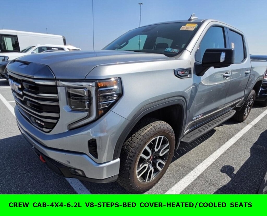 One Owner, Clean Autocheck / No Accidents, Remaining Factory Warranty, Extended Warranty Available, Bluetooth / Hands-free, Apple Car Play / Android Auto Compatible, Back-Up Camera w/ Guidelines, Heated Seats, Keyless Entry, Leather Seats, Multi-Zone Climate Control, Navigation, Portable Audio Connection, Premium Audio, Premium Wheels, Security System, Multi-function Steering Wheel, Trailer Hitch, 4x4/4WD, Remote Start, Spray-in Bedliner, Apple Carplay, Android Auto, Cooled Seats, Oversized Tires, iphone / Droid Navigation Compatible, BED COVER, Sierra 1500 AT4, 4D Crew Cab, EcoTec3 6.2L V8, 10-Speed Automatic, 4WD, Sterling Metallic, Jet Black w/Kalahari Accents w/Perforated Front Leather Seat Trim, 120-Volt Interior Power Outlet, 2 Charge/Data USB Ports Inside Center Console, 2 Type-C Charge-Only Rear USB Ports, 2 USB Ports, 220 Amp Alternator, AT4 Preferred Package, AT4 Premium Package, Auto-Locking Rear Differential, Black Chrome Header & Grille Insert Bars, Color-Keyed Carpeting Floor Covering, Deep-Tinted Glass, Electric Rear-Window Defogger, Floor-Mounted Center Console, Front Prem Floor Liners w/Removable Carpet Insert, Front Rain-Sensing Wipers, GMC Connected Access Capable, HD Surround Vision, Heated 2nd Row Outboard Seats, Heated Driver & Front Outboard Passenger Seating, Heavy-Duty Air Filter, Hill Descent Control, Hitch View, In-Vehicle Trailering System App, Integrated Trailer Brake Controller, Keyless Open & Start, LED Cargo Area Lighting, Navigation System, Off-Road High Clearance Step (LPO), OnStar & GMC Connected Services Capable, Perimeter Lighting, Power Front Passenger Windows w/Express Up/Down, Power Front Windows w/Driver Express Up/Down, Power Rake & Telescoping Steering Column, Power Rear Windows w/Express Down, Power Sliding Rear Window w/Rear Defogger, Preferred Equipment Group 4SB, Premium Bose 7-Speaker Sound System, Push Button Start, Rear Cross Traffic Braking, Rear Pedestrian Detection, Rear Wheelhouse Liners, Red Recovery Hooks, Remote Vehicle Starter System, SiriusXM w/360L, Spray-On Pickup Bedliner w/AT4 Logo, Steering Wheel Audio Controls, Theft Deterrent System (Unauthorized Entry), Trailer Camera Provisions, Trailer Side Blind Zone Alert, Trailering Package, Ultrasonic Front & Rear Park Assist, Universal Home Remote, Ventilated Driver & Front Passenger Seats, Wheels: 20 x 9 Machined Aluminum, Wi-Fi Hotspot Capable, Wireless Charging.