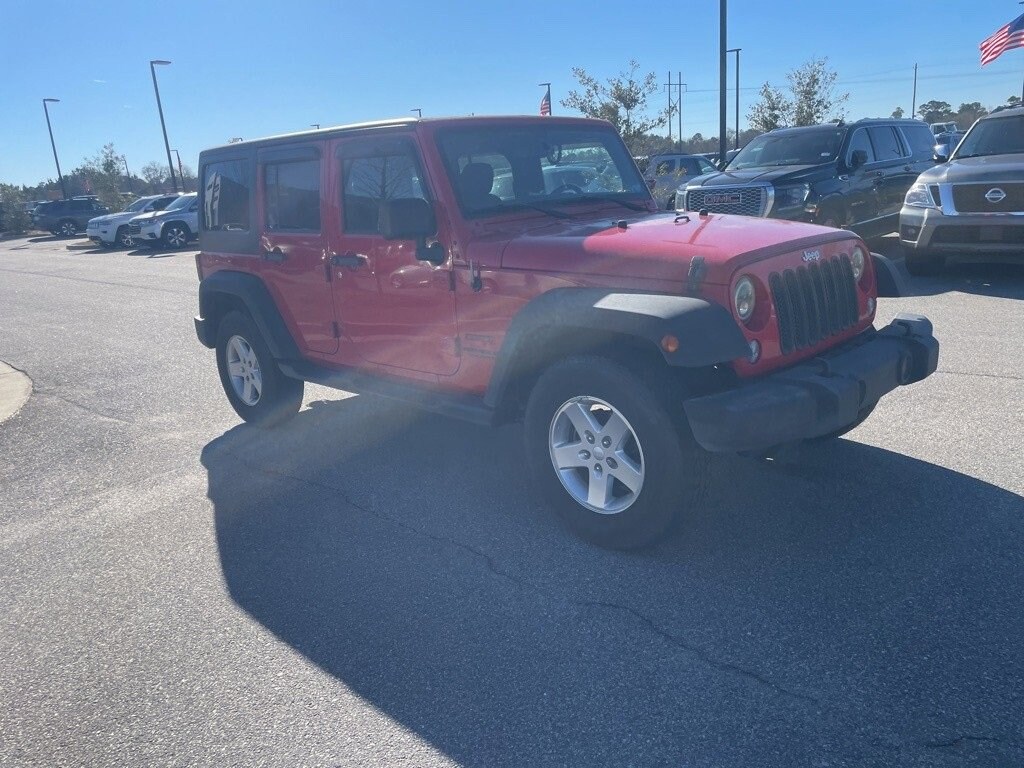 Local Trade-in, Wrangler Unlimited Sport, 4D Sport Utility, 3.6L V6 24V VVT, 5-Speed Automatic, 4WD, Firecracker Red Clear Coat, Dark Saddle/Black w/Cloth Bucket Seats, 17 x 7.5 Aluminum Wheels, Auto-Dimming Mirror w/Reading Lamp, Deep Tint Sunscreen Windows, Leather Wrapped Steering Wheel, Quick Order Package 24S.