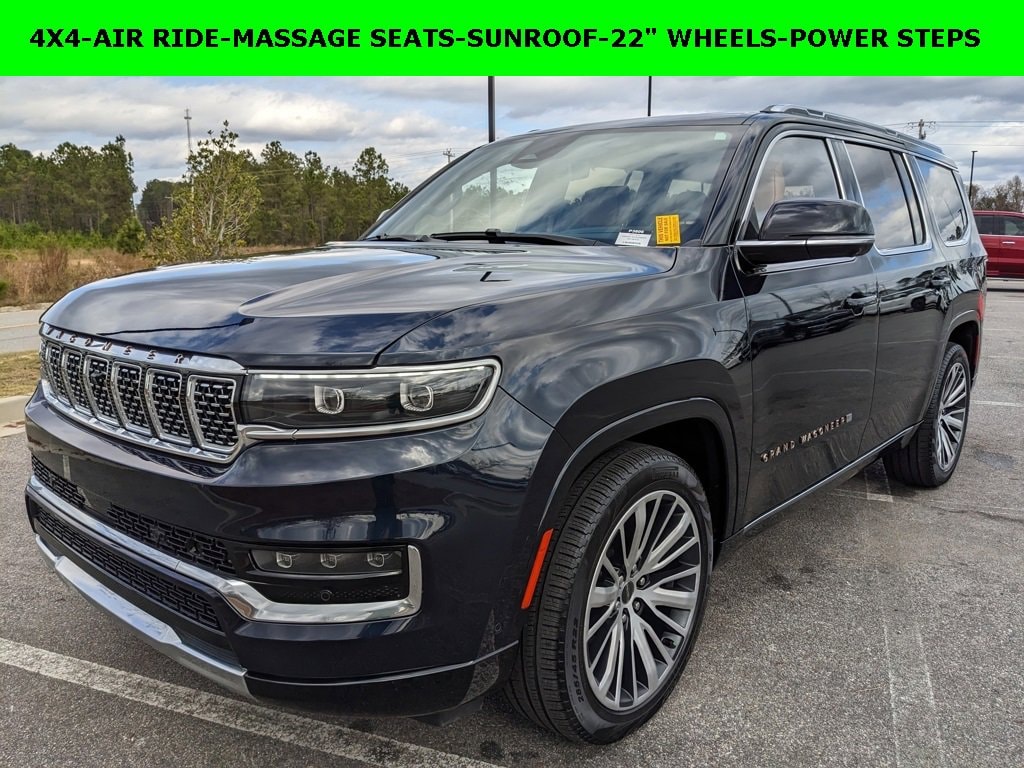 One Owner, Clean Autocheck / No Accidents, Factory Certified Preowned, Remaining Factory Warranty, Extended Warranty Available, Bluetooth / Hands-free, Apple Car Play / Android Auto Compatible, 3rd Row Seats, Surround-View Camera w/ Guidelines, Cruise Control, Heated Seats, Leather Seats, Multi-Zone Climate Control, Navigation, Portable Audio Connection, Premium Audio, Premium Wheels, Multi-function Steering Wheel, Sunroof / Moonroof, 4x4/4WD, Remote Start, Apple Carplay, Android Auto, Cooled Seats, *Premium Delivery Service Available*, 8-Passenger Seating, iphone / Droid Navigation Compatible, Grand Wagoneer Series III, 4D Sport Utility, 3.0L I6, 4WD, Midnight Sky, Tupelo/Black w/Premium Leather Trimmed Bucket Seats, 2nd Row Dual Charge-Only USB Ports, 40/20/40 2nd Row Bench Power Tip/Slide, 8-Passenger Seating, Apple CarPlay/Android Auto, Automatic temperature control, Emergency communication system: Wagoneer Connect, Flexible Seating Group, Front dual zone A/C, Heated front seats, Heated rear seats, Heated steering wheel, Low tire pressure warning, Navigation System, Power driver seat, Power Liftgate, Power moonroof, Power passenger seat, Premium Leather Trimmed Bucket Seats, Quick Order Package 28W, Radio: Uconnect 5 Nav w/12.0 Display, Rear air conditioning, Rear anti-roll bar, Rear dual zone A/C, Reclining 3rd row seat, Remote keyless entry, Ventilated front seats, Ventilated rear seats, Wheels: 22 x 9.0 Premium 4 Aluminum.