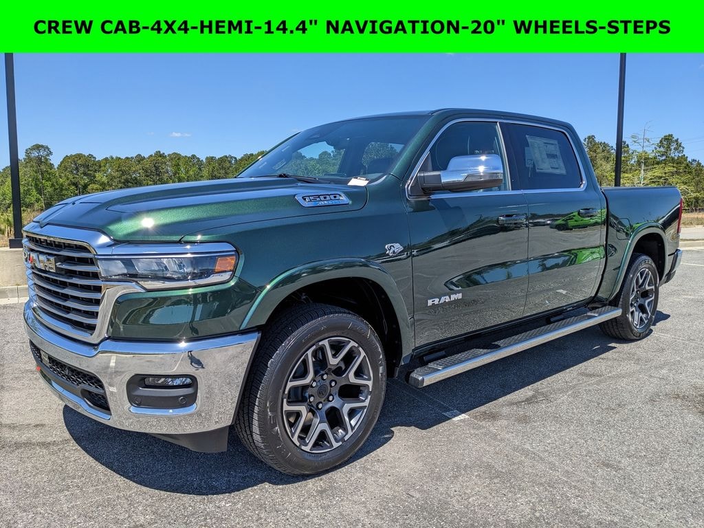 Price includes rebates. Not all customers may qualify for all rebates. $1500 - 2026 Southeast BC Retail Bonus Cash. Exp. 04/30/2026 $3500 - 2026 National Retail Bonus Cash . Exp. 04/30/2026 Savings applied to everyone. Includes $1000 finance assistance. Not available with special financing, lease and select other offers. Must take new retail delivery by 06/30/2026. Savings applied to everyone. $1000.00 Retail Trade Incentive for current owners trading in 2011 or newer motor vehicle with less than 150,000 miles. Trade must run and drive with valid registration. Not available with special financing, lease and some other offers. Must take new retail delivery by 06/30/2026. Ask Dealer representative for details on qualification. *The Jimmy Britt Premium Delivery Program lets you buy this vehicle right from the comfort of your couch. We frequently deliver vehicles nationwide, and even arrange test drives at home, if you are nearby. We will send you a personal video on any vehicle you are interested in. Call, email, or text us for details.* (Plus, you get our low-price guarantee and two free oil changes!) Factory MSRP: $73,405 Priced below KBB Fair Purchase Price! Bluetooth / Hands-free, Apple Car Play / Android Auto Compatible, Back-Up Camera w/ Guidelines, Cruise Control, Heated Seats, Leather Seats, Multi-Zone Climate Control, Navigation, Portable Audio Connection, Power Locks, Power Windows, Premium Audio, Premium Wheels, Security System, Multi-function Steering Wheel, 4x4/4WD, Remote Start, Level 2 Equipment Group, Apple Carplay, Android Auto, Cooled Seats, *Premium Delivery Service Available*, iphone / Droid Navigation Compatible, 1500 Laramie, 4D Crew Cab, HEMI 5.7L V8 Multi Displacement VVT eTorque, 4WD, Serrano Green Metallic, Black w/Leather Trimmed Bucket Seats, 14.4" Touchscreen Display, 3.92 Rear Axle Ratio, 4G LTE Wi-Fi Hot Spot, Adjustable pedals, Apple CarPlay/Android Auto, Automatic temperature control, Bright Day Light Opening Moldings, Chrome Appearance Group, Cluster 12" TFT Color Display, Connected Travel and Traffic Services, Connectivity - US/Canada, Front dual zone A/C, Front Passenger Interactive Display, GPS Navigation, Harman/Kardon 19 Speaker Premium Sound, Heated front seats, Heated rear seats, Heated steering wheel, Integrated Center Stack Radio, Integrated Voice Command with Bluetooth, Laramie Level 2 Equipment Group, Leather Trimmed Bucket Seats, Low tire pressure warning, Navigation System, ParkView Rear Back-Up Camera, Power driver seat, Power passenger seat, Power Tailgate, Quick Order Package 27H Laramie, Radio: Uconnect 5 Nav with 14.4" Display, Rain Sensitive Windshield Wipers, Rear anti-roll bar, Remote keyless entry, SiriusXM Radio Service, SiriusXM with 360L, USB Host Flip, Ventilated front seats, Wheel to Wheel Side Steps, Wheels: 20" x 9" Premium Paint/Polish. Serrano Green Metallic 2026 Ram 1500 Laramie HEMI 5.7L V8 Multi Displacement VVT eTorque 4WD