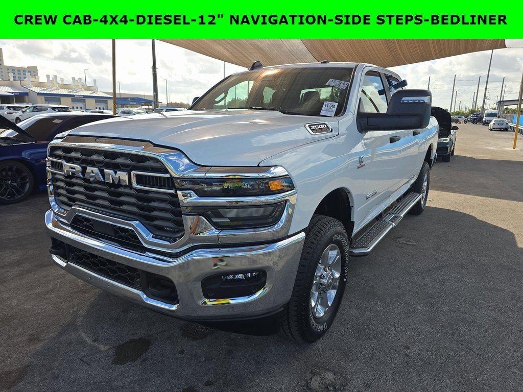 One Owner, Clean Autocheck / No Accidents, Remaining Factory Warranty, Extended Warranty Available, Bluetooth / Hands-free, Apple Car Play / Android Auto Compatible, Back-Up Camera w/ Guidelines, Multi-Zone Climate Control, Navigation, Portable Audio Connection, Premium Audio, Premium Wheels, Multi-function Steering Wheel, Trailer Hitch, 4x4/4WD, Spray-in Bedliner, Apple Carplay, Android Auto, *Premium Delivery Service Available*, iphone / Droid Navigation Compatible, 2500 Big Horn, 4D Crew Cab, 6.7L I6, 4WD, Bright White Clearcoat, Black w/Cloth 40/20/40 Bench Seat, 12 Touchscreen Display, 2nd Row in Floor Storage Bins, 4G LTE Wi-Fi Hot Spot, 9 Alpine Speakers with Subwoofer, Air Conditioning ATC with Dual Zone Control, Alexa Built-in, Anti-Spin Differential Rear Axle, Apple CarPlay, Auto Power-Folding Mirrors, Auto-Dimming Rear-View Mirror, Big Horn Level 1 Plus Equipment Group, Black Exterior Mirrors, Cold Weather Group, Connected Travel and Traffic Services, Connectivity - US/Canada, Diesel Exhaust Brake, Disassociated Touchscreen Display, Dual Glove Boxes, Emergency Vehicle Alert System (EVAS), Engine Block Heater, Exterior Mirrors Courtesy Lamps, Exterior Mirrors with Heating Element, Exterior Mirrors with Supplemental Signals, Foam Bottle Insert (door Trim Panel), Footwell Courtesy Lamp, For Details, Visit DriveUconnect.com, For More Info, Call 800-643-2112, Forward and Reverse Utility Lights, Front Performance Tuned Shock Absorbers, Global Telematics Box Module, Glove Box Lamp, Google Android Auto, GPS Antenna Input, GPS Navigation, HD Radio, Hill Assist, Integrated Voice Command with Bluetooth, LED Bed Lighting, Locking Lower Glove Box, Luxury Steering Wheel, Mirror Running Lights, MOPAR Deployable Bed Step, MOPAR Spray in Bedliner, MOPAR Winter Front Grille Cover, Navigation System, Off Road Package, Off-Road Info Pages, Power Adjust Mirrors, Power Heated Folding Telescopic Mirrors, Power Telescoping Mirrors, Power-Adjustable Convex Aux Mirrors, Premium Cloth 40/20/40 Bench Seat, Quick Order Package 24Z Big Horn, Radio: Uconnect 5 Navigation with 12.0 Display, Rear Dome with on/Off Switch Lamp, Rear Performance Tuned Shock Absorbers, Remote Start System, Selectable Tire Fill Alert, SiriusXM Radio Service, SiriusXM with 360L, Steering Wheel Mounted Audio Controls, Trailer Tow Pages, Wheels: 18 x 8.0 Polished Aluminum.